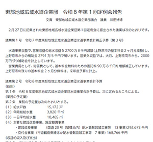 2月27日に開かれた水道企業団議会の報告も、HPに掲載し、議員のタブレット端末にも送りました。