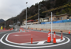 「四方津駅にたくさんのポールが立って、邪魔だ」という電話をいただき、すぐに見に行ってきました。駅前広場には、中央に街路灯の白い高いポール。白い3mくらいのポールが2本、これは道路標識を立てるものと思われます。区画線上にあるラバーポール、養生のための三角コーン。オレンジ色に塗装されている部分は、駐車スペースです。養生用の三角コーンは、工事が完了したら撤去されるでしょう。ラバーポールは、車が接触しても、普通車には傷がつきません。